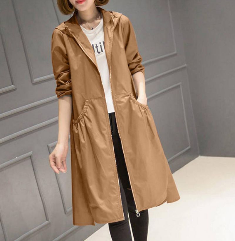 トレンチコート レディース ミディアム丈ジャケット スプリングコート アウター 秋服 韓国風 フード付き バーカー 30代 20代 大きいサイズ お洒落