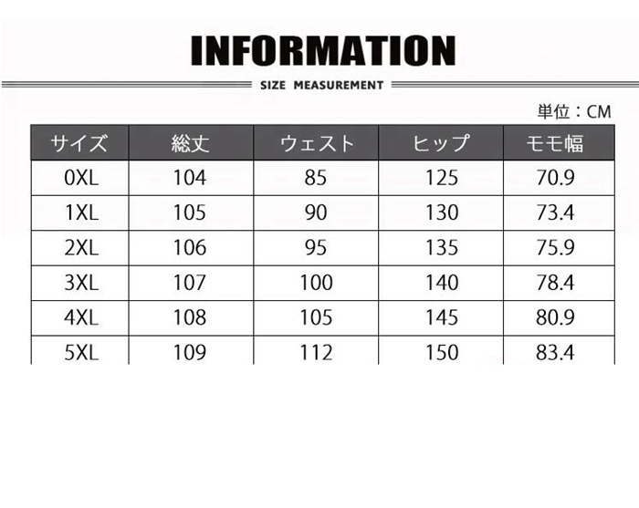 サイズ: 0XL(80-95kg) 1XL(95-105kg) 2XL(105-115kg) 3XL(115-125kg) 4XL(125-135kg) 5XL(135-150kg)