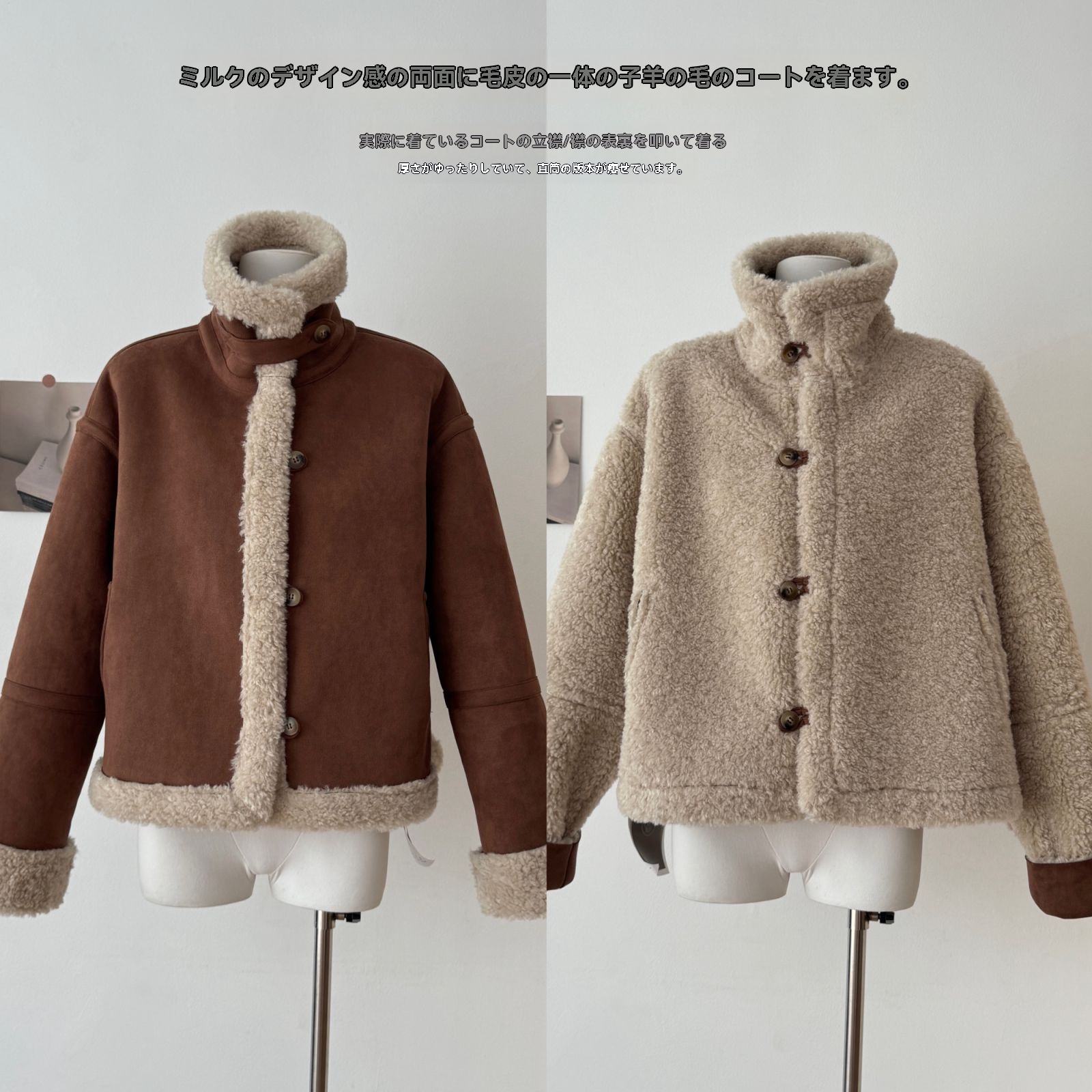 ボアジャケットレディース 高級感 高品 質 フェイクファー ゆったり ラムウールコート ボアコート 毛皮コート 皮毛一体 アウター おしゃれ 気質 ふわふわ 裏起毛 韓国ファッション
