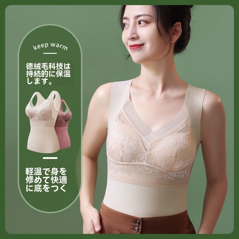 タンクトップ 裏起毛 ブラ 裏起毛タンクトップ 腹巻 裹起毛 レース ブラタンク タンクトップ ふわふわ ブラトップ 薄手 インナー カップ付きインナー カップ付き +5℃ 暖