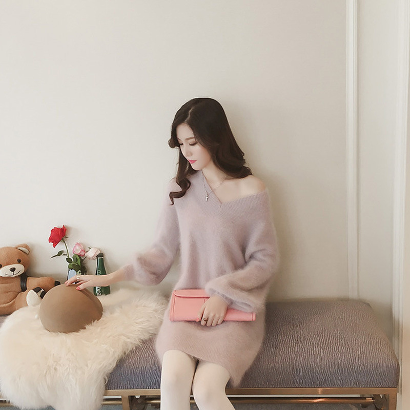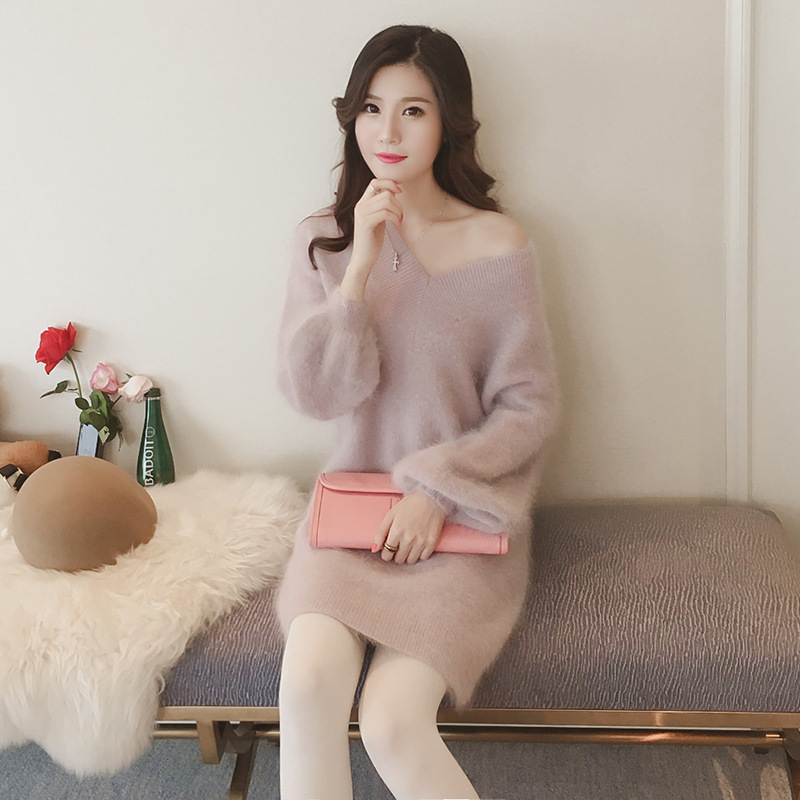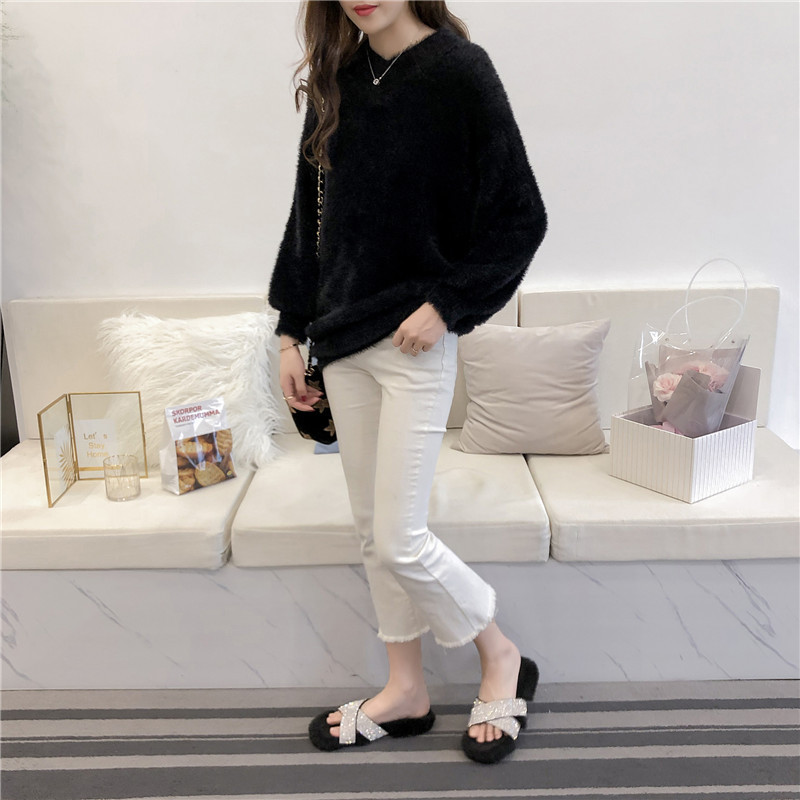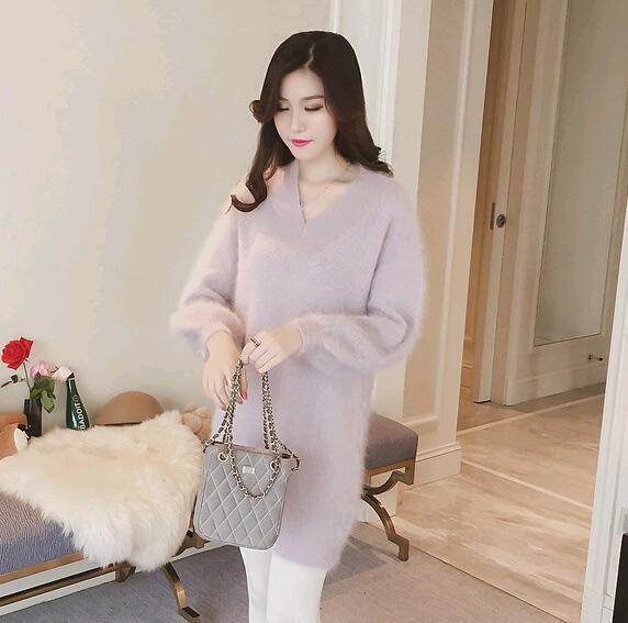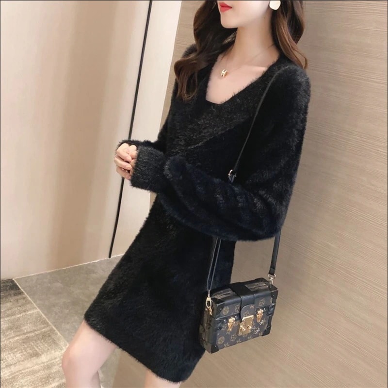 人気なリブニット ベーシックニット 秋冬新作 セーター レディース 無地百掛け 柔らかくてもちもちするミンク セミロング 長袖トップス Vネック着痩せ 気質ニットカシミヤタッチ