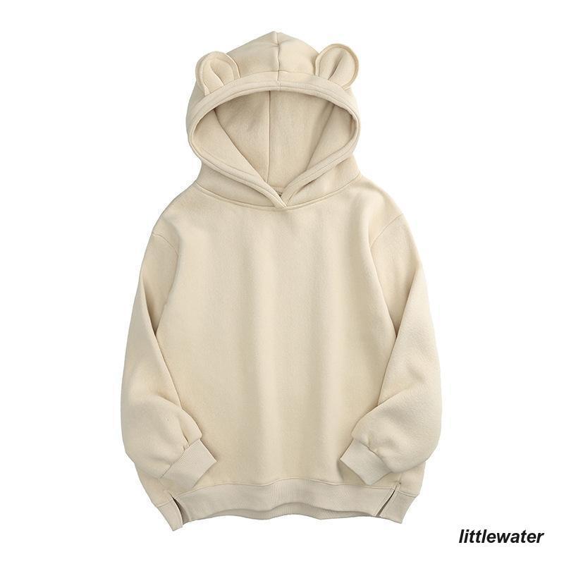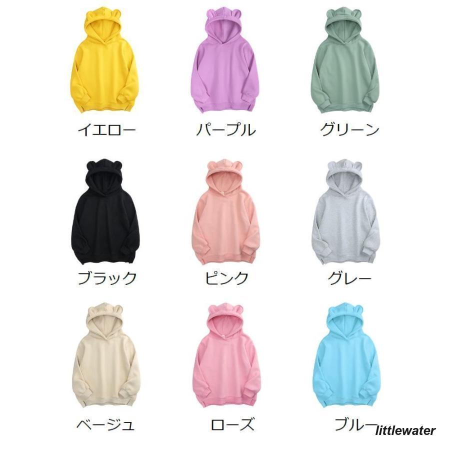パーカー プルオーバー レディース トップス 長袖 裏起毛 フード付き 耳付き スリット シンプル 無地 かわいい カジュアル パーカー