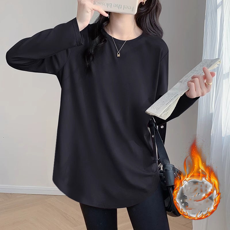 裏起毛 インナー カットソー 長袖 Tシャツ ロング丈 ロンT レディース 肌触り 微起毛 トップス ロングTシャツ ゆったり レイヤードトップス 大きいサイズ