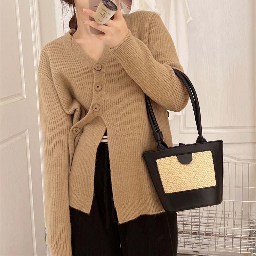 6colors 丸ネック新作秋冬厚手ニットセーター ゆったりニット長袖トップストップスラウンドネックニットカシミヤタッチ トップス ニット