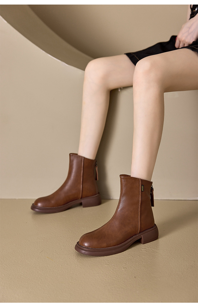 ロングブーツ 秋冬マーチンブーツ韓国版バックジッパー女性ブーツレトロな中に大きめのカジュアルシューズ厚底シューズ ショートブーツ レディース ブーティー マーディンブーツ