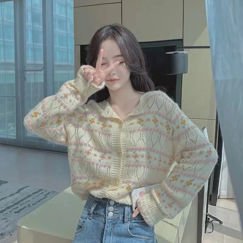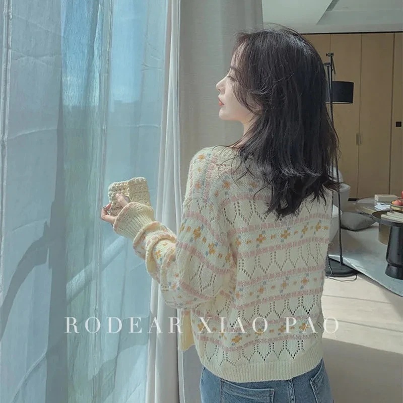 ジャケット トップス 韓国ファッション カーディガン ベーシックニット 長袖ブラウス 体型カバーチュニック ストライプシャツ ニットカーディガン 春 カーディガン セーター レディース 夏韓国ファッシ