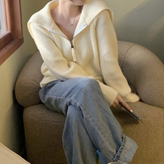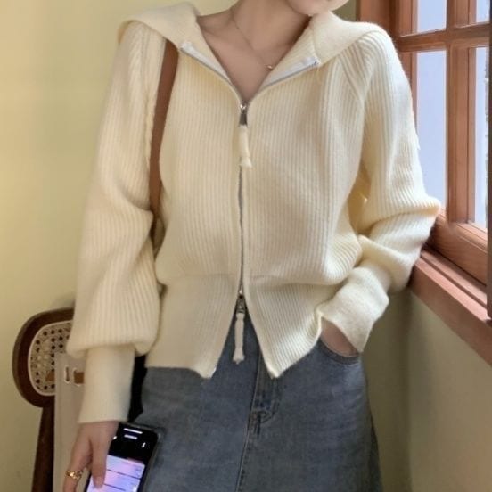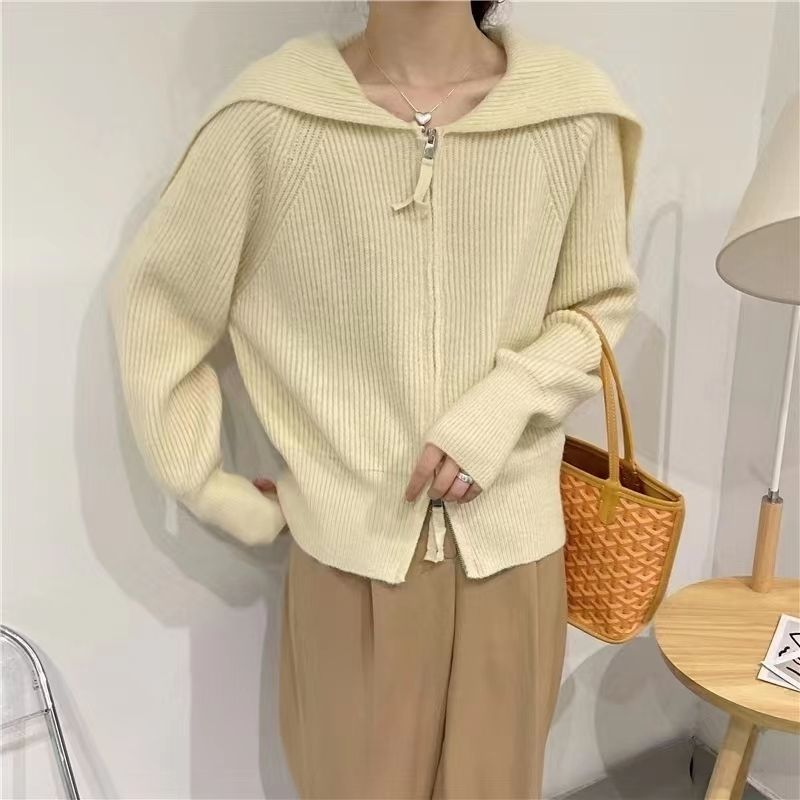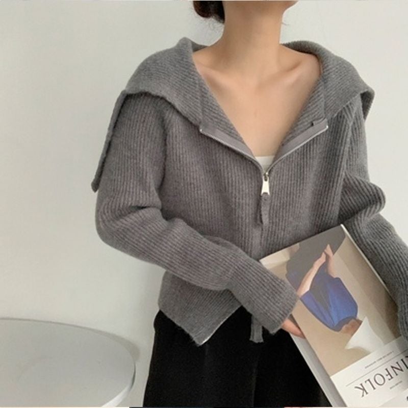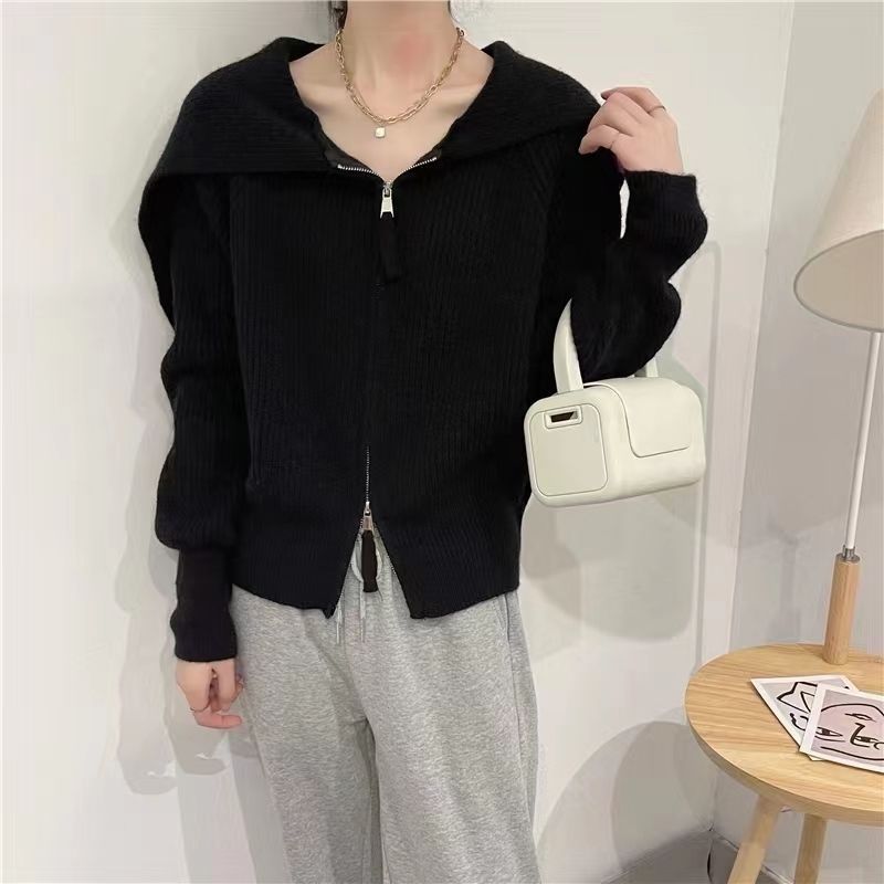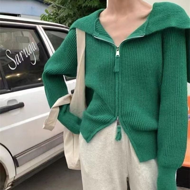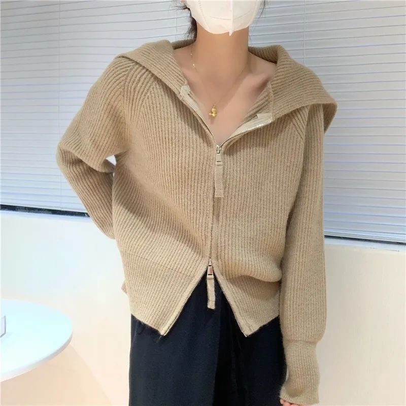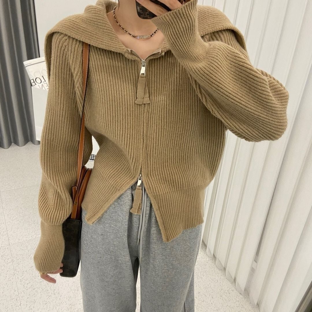 ジャケット トップス 韓国ファッション カーディガン ショート ベーシックニット あったか カシミヤタッチ ダブルジッパー セーター コート ニット ベーシックニット ダブルファスナー 開襟韓国ファッ