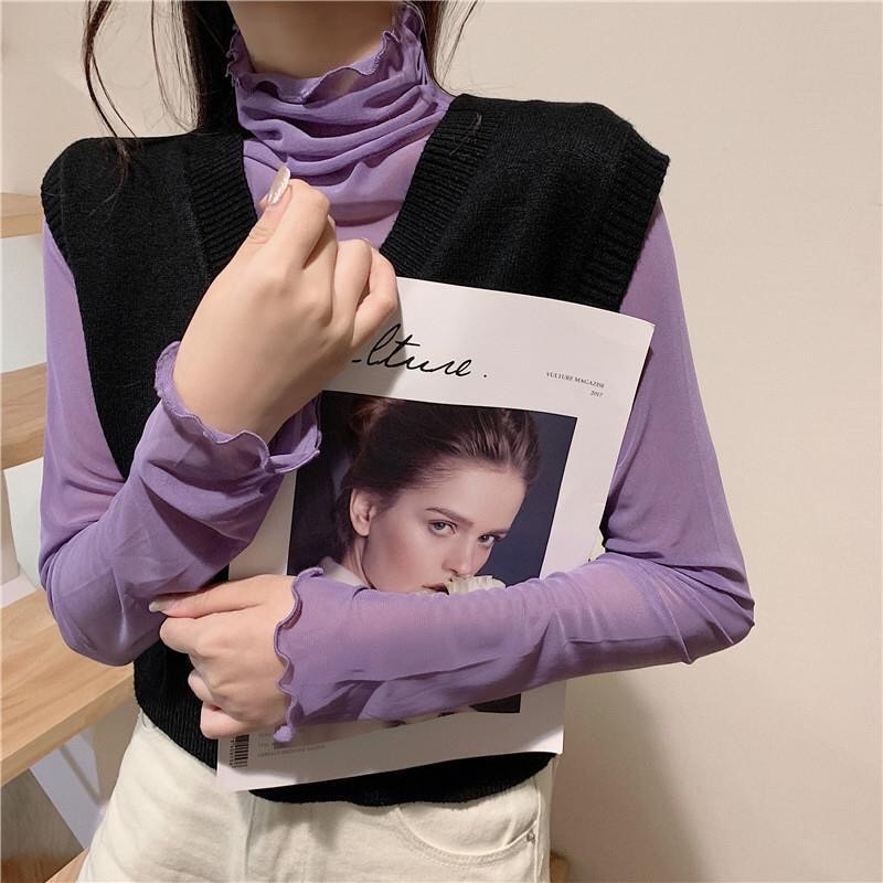 11色展開 国内発送 コーデ万能選べる2枚目がお買い得 シースルーインナー シアーカットソー タートルネック 透け感 Tシャツ カットソー