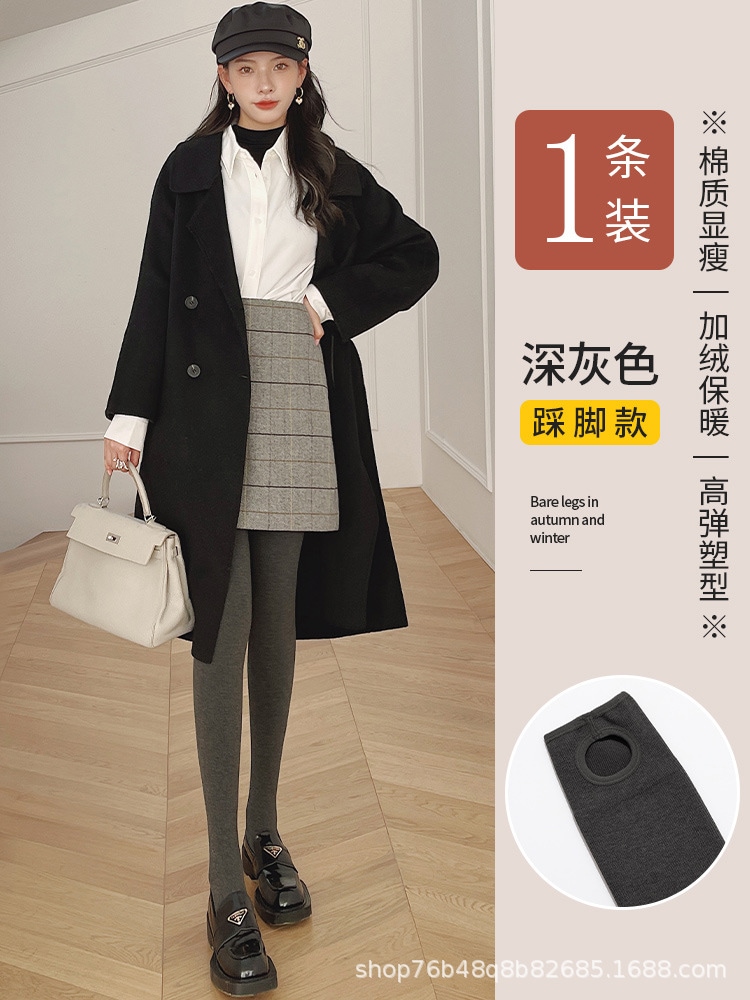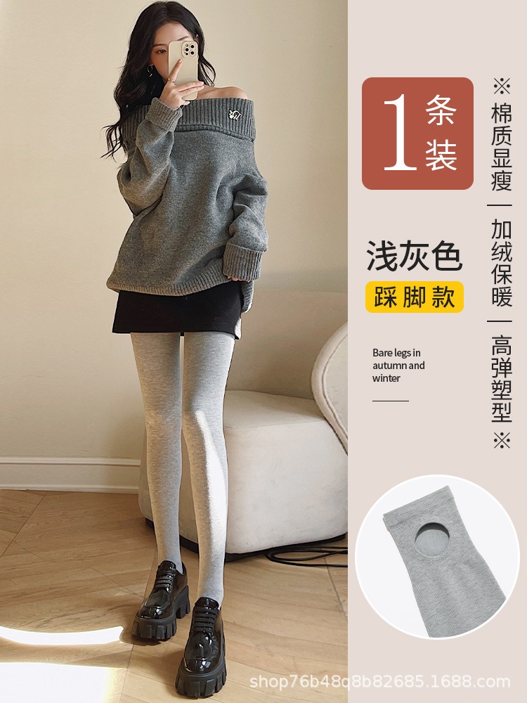 グレーのレギンス女性の春と秋の外着にダウンを厚くした秋冬保温綿ズボン足踏みストッキング秋パンツ レギンス