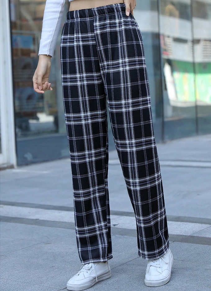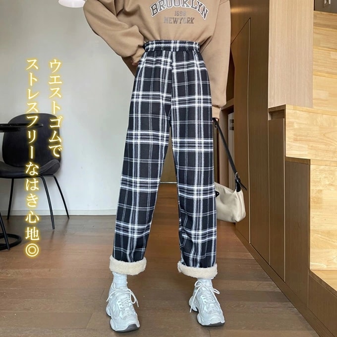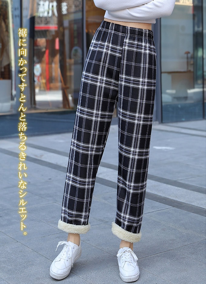 裏起毛チェック柄ワイドパンツ レディース 裏起毛 もこもこ 温か 防寒 チェック柄 ワイドパンツ カジュアルパンツ デイリー