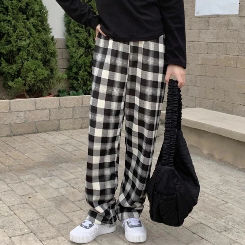 裏起毛 チェック柄パンツ ワイドパンツ チェック パンツ 裏ボア 暖かい レディース ウエストゴム チェックパンツ チェック柄 裏起毛パンツ イージーパンツ