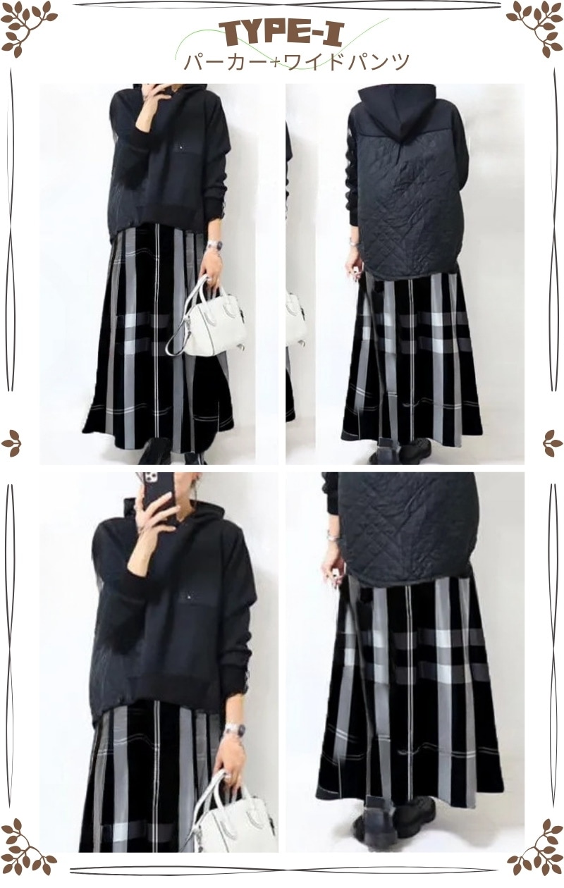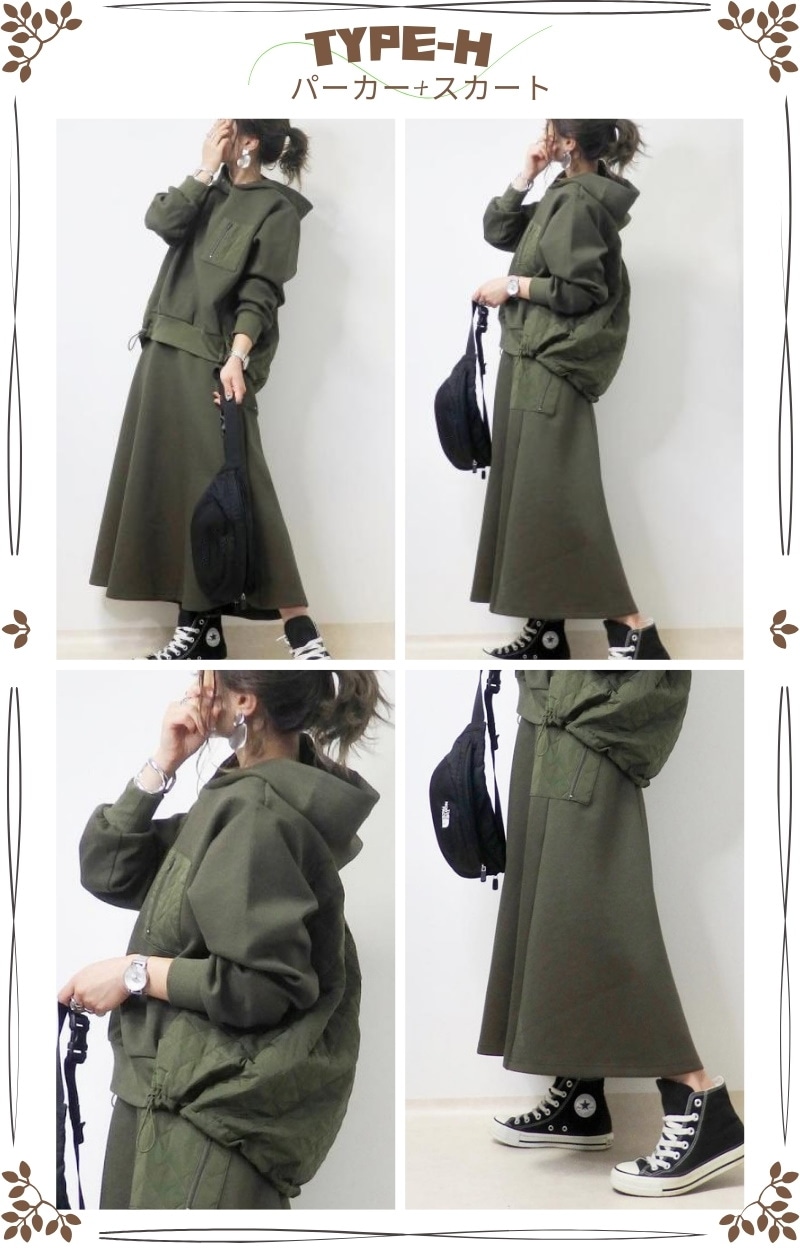 M : トップス:着丈57-65cm バスト106cm 肩幅44.5cm 袖丈52cm スカート丈89cm ウエスト66cm