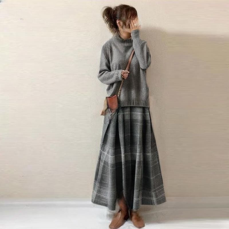 日系 セットアップ レディース 秋 冬 セーター+スカート 着痩せ 体型カバー トップス フレアスカ一ト韓国ファッション 気質 セットアップ