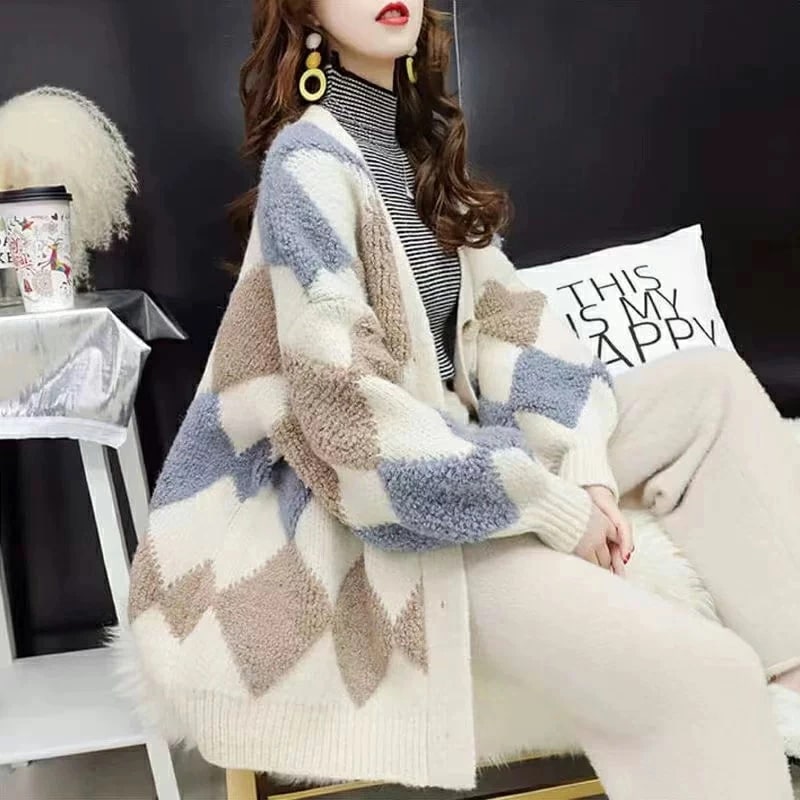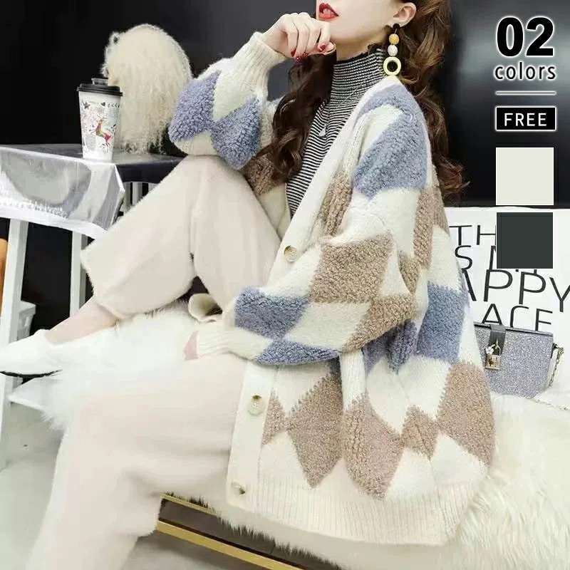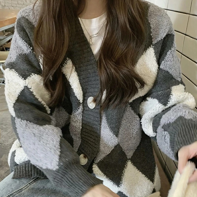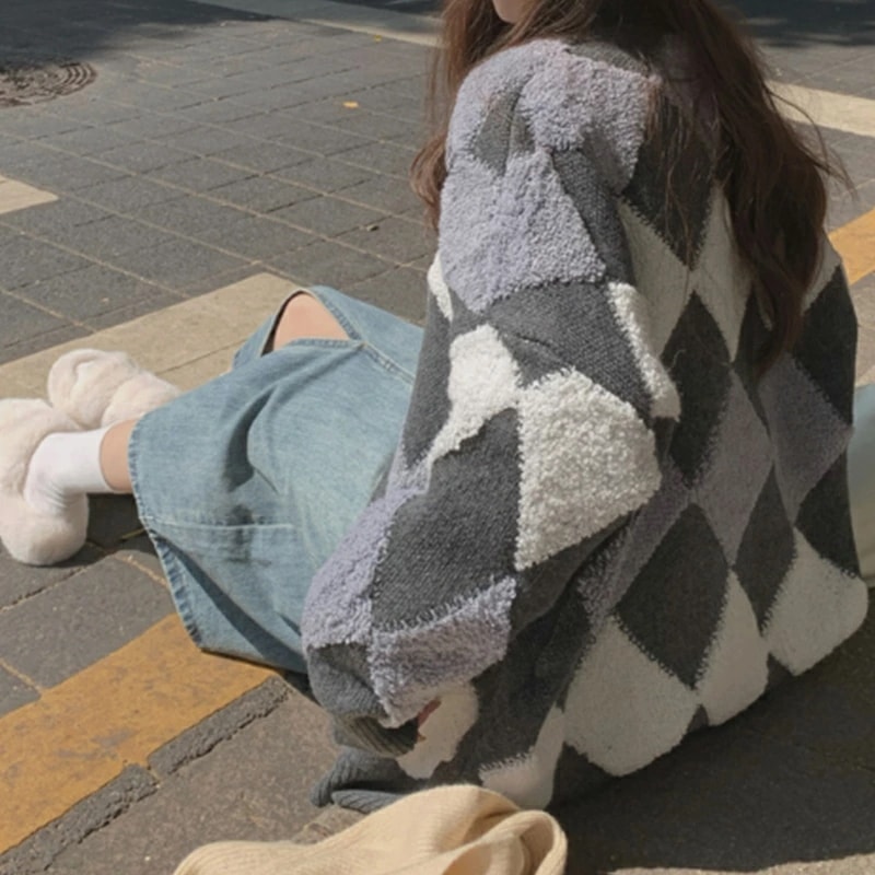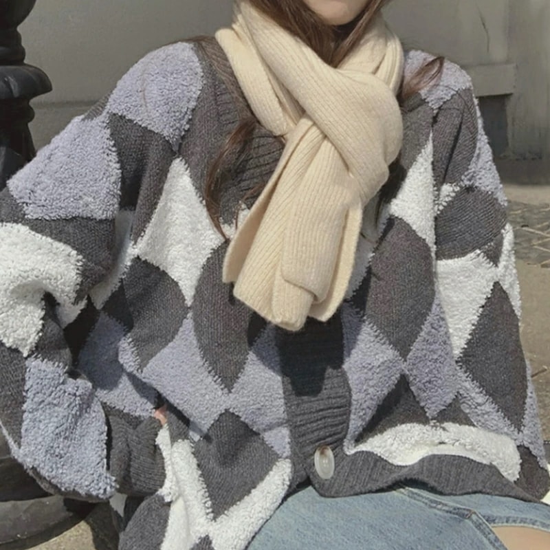アーガイルカーディガン カーディガン オーバーサイズ アーガイル ニットカーディガン ゆったり ニット レディース 長袖 Vネック ドロップショルダー アーガイル柄