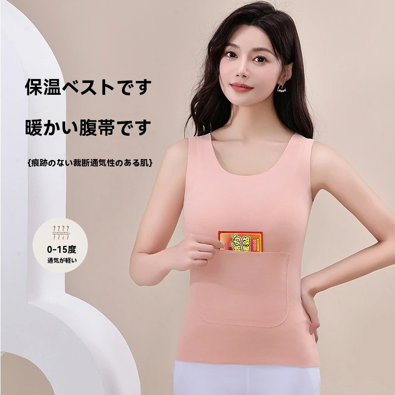 裏起毛 タンクトップ あったか インナー レディース 腹巻き ポケット付き 冷え対策 暖かい 防寒 秋冬 下着 肌着 ストレッチ キャミソール