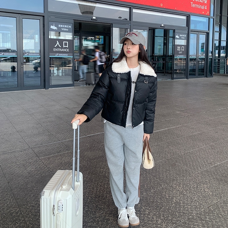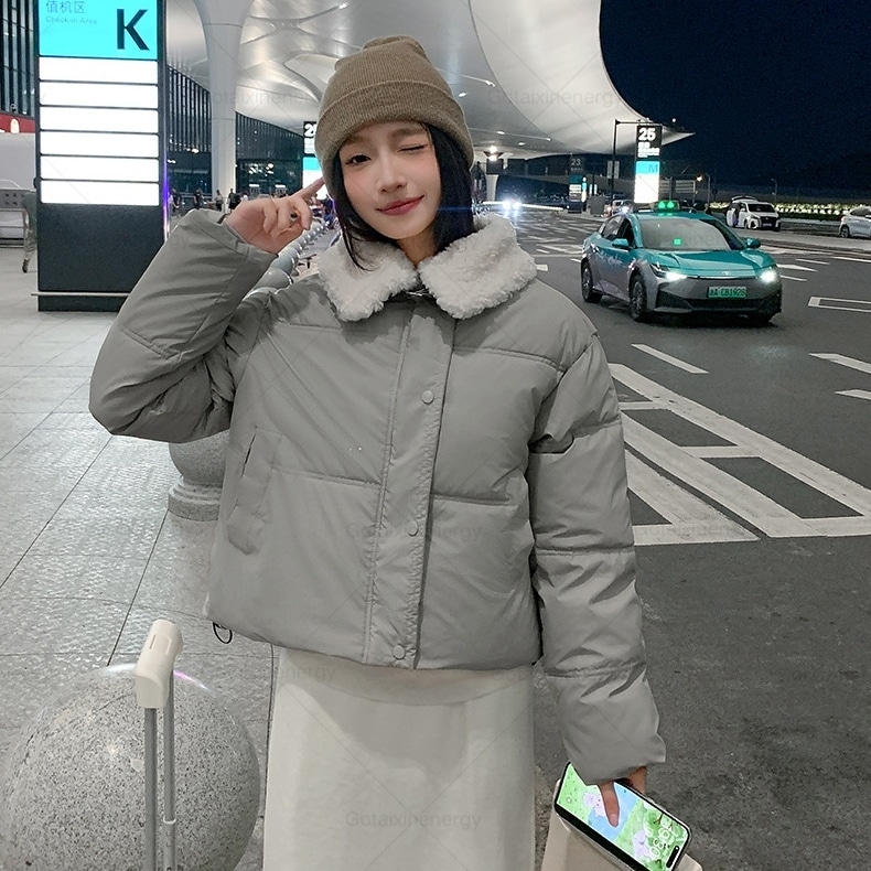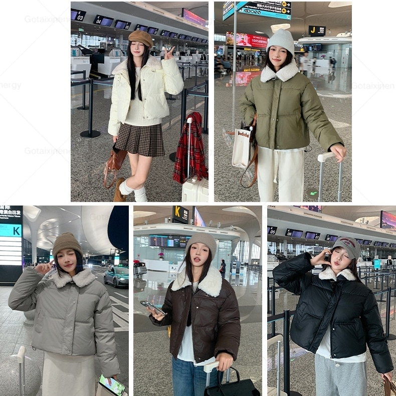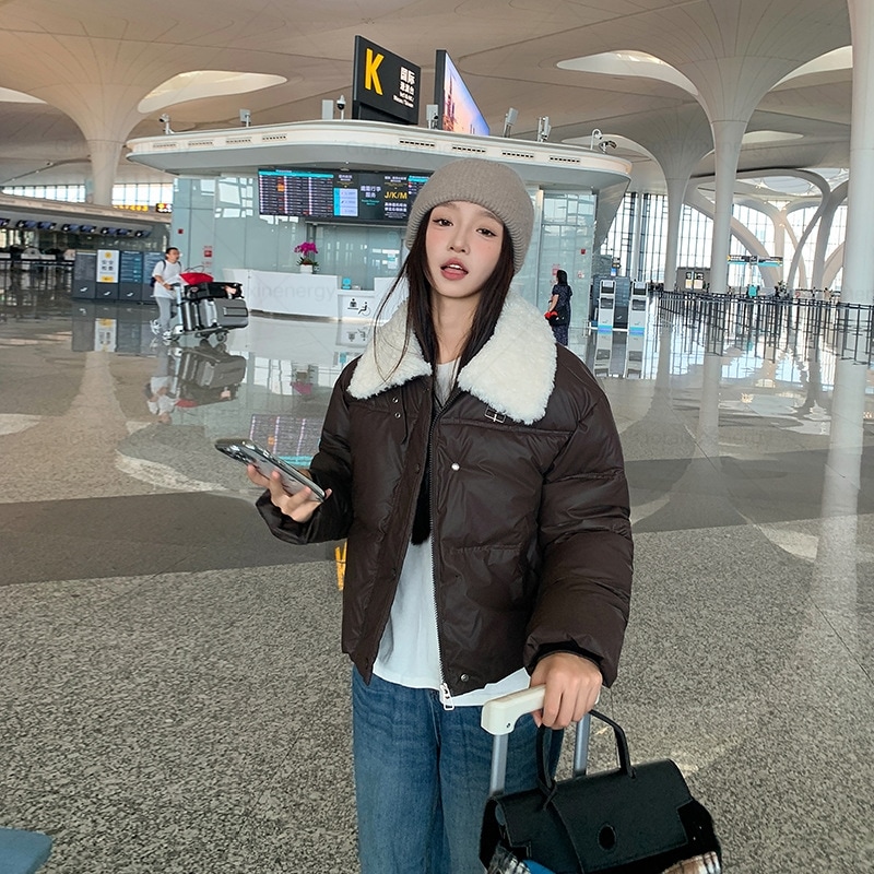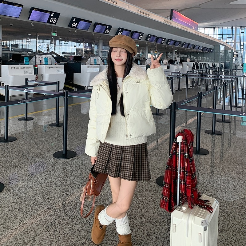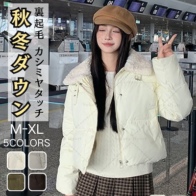 2024秋冬 ダウンジャケット レディース アウター 無地 気質 カシミヤタッチ ファーカラー ライトダウン ショート 軽量 ジップアップ アウター 韓国ファッション レディース