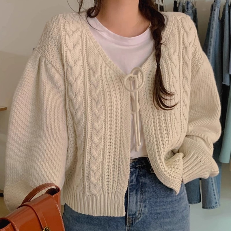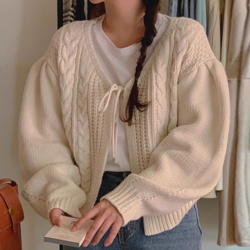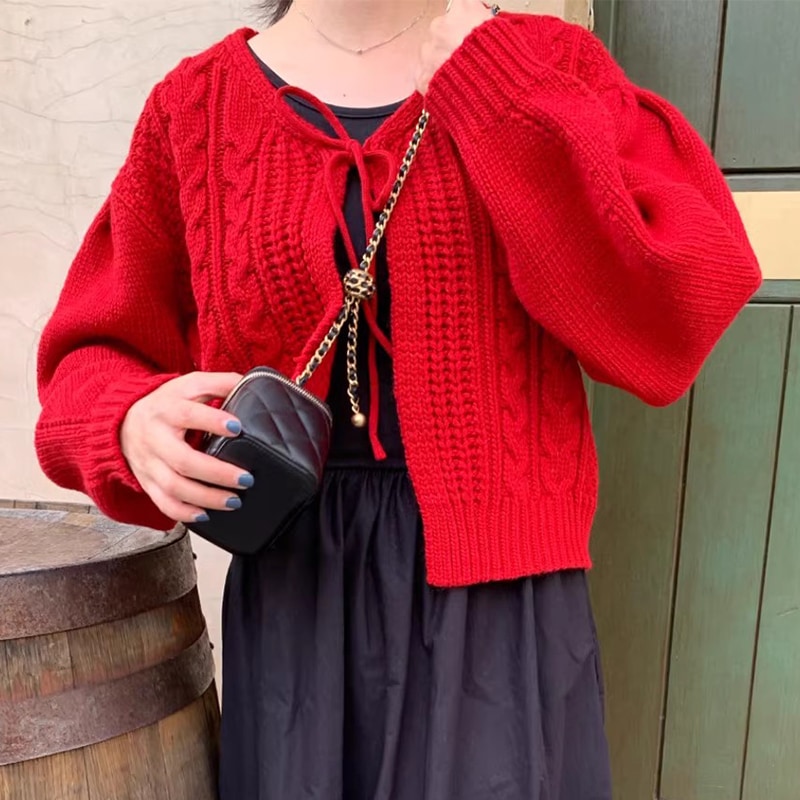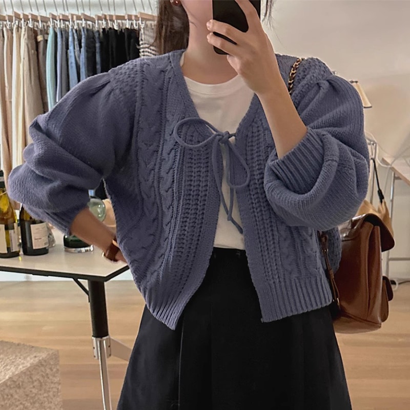 レトロ可愛いリボンニットカーディガン人気ニットトップス カーディガン