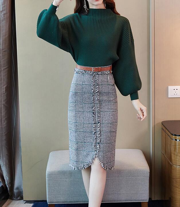 日系 レディース 大きめサイズ セーター+スカート 秋 冬 ニットセットアップ 体型カバー トップス ロングスカート 二点セット 着痩せ 秋冬 百掛け レディースファッション