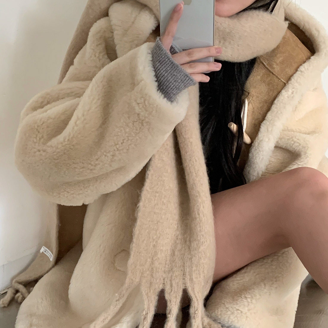 韓国ファッション レディース 冬アウター リバーシブル ラムファー コート ルーズ ミディアム ロング コットンコート ジャケット トレンチコート