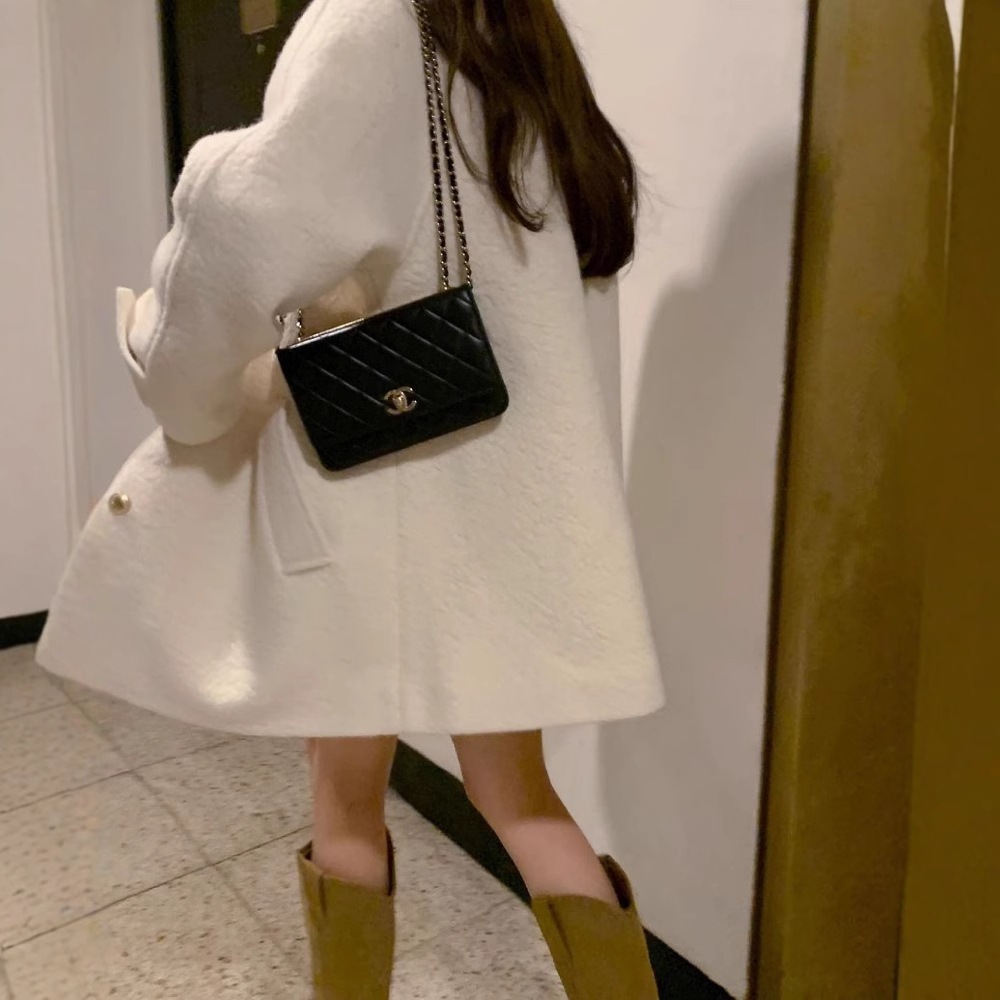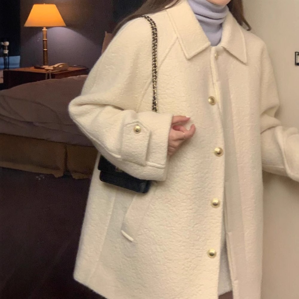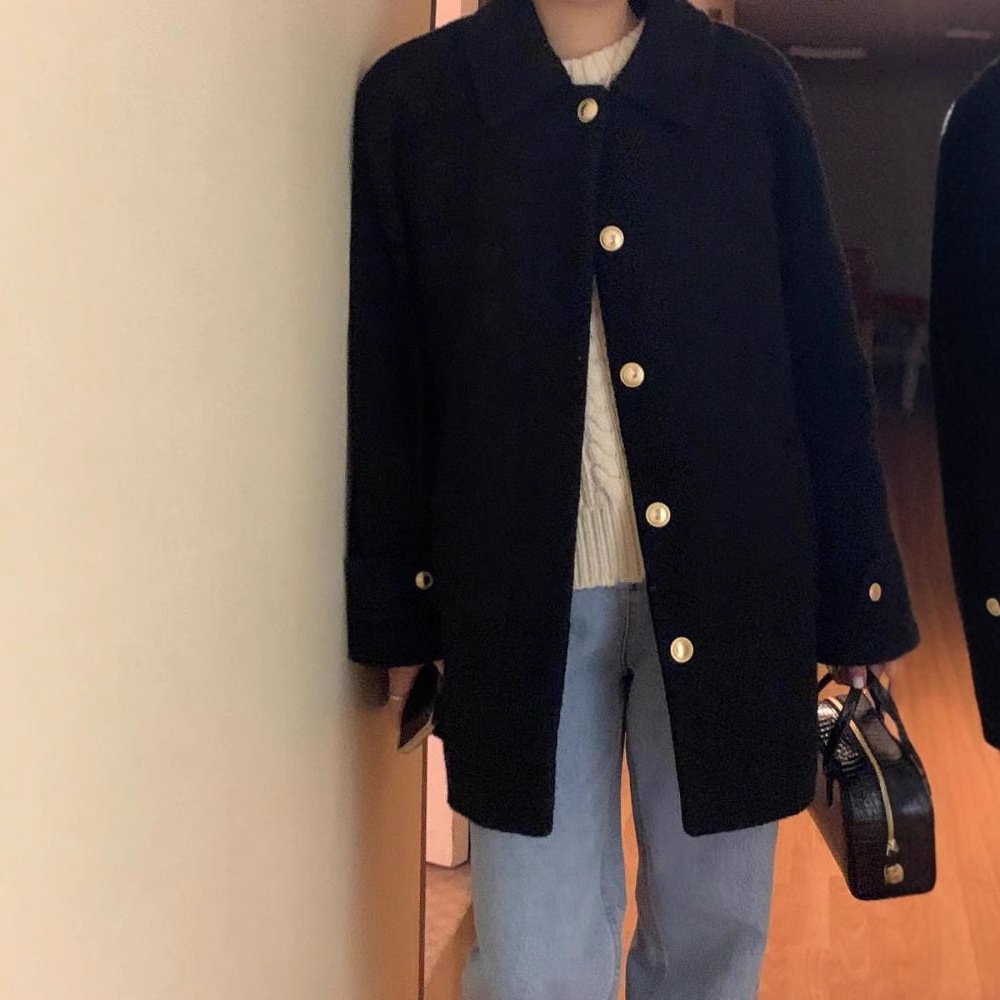 韓国ファッション レディース アウターラペルシングルブレストルーズツイードコートジャケット トレンチコート
