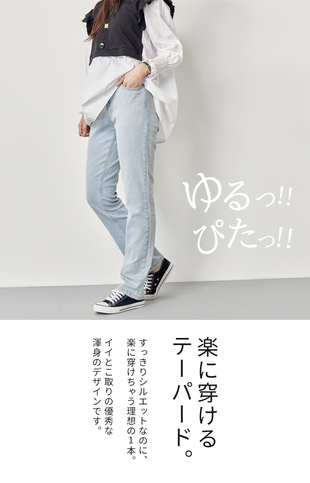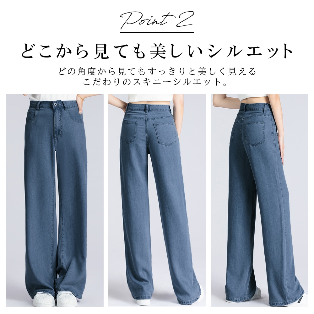 美脚に見えるストレートシルエット デニムパンツ テーパードパンツ ワイドジーンズ ジーパン リラックスパンツ 韓国ファッション レディース ストレッチ 着痩せ ボトムス カジュアル きれいめ 春 夏