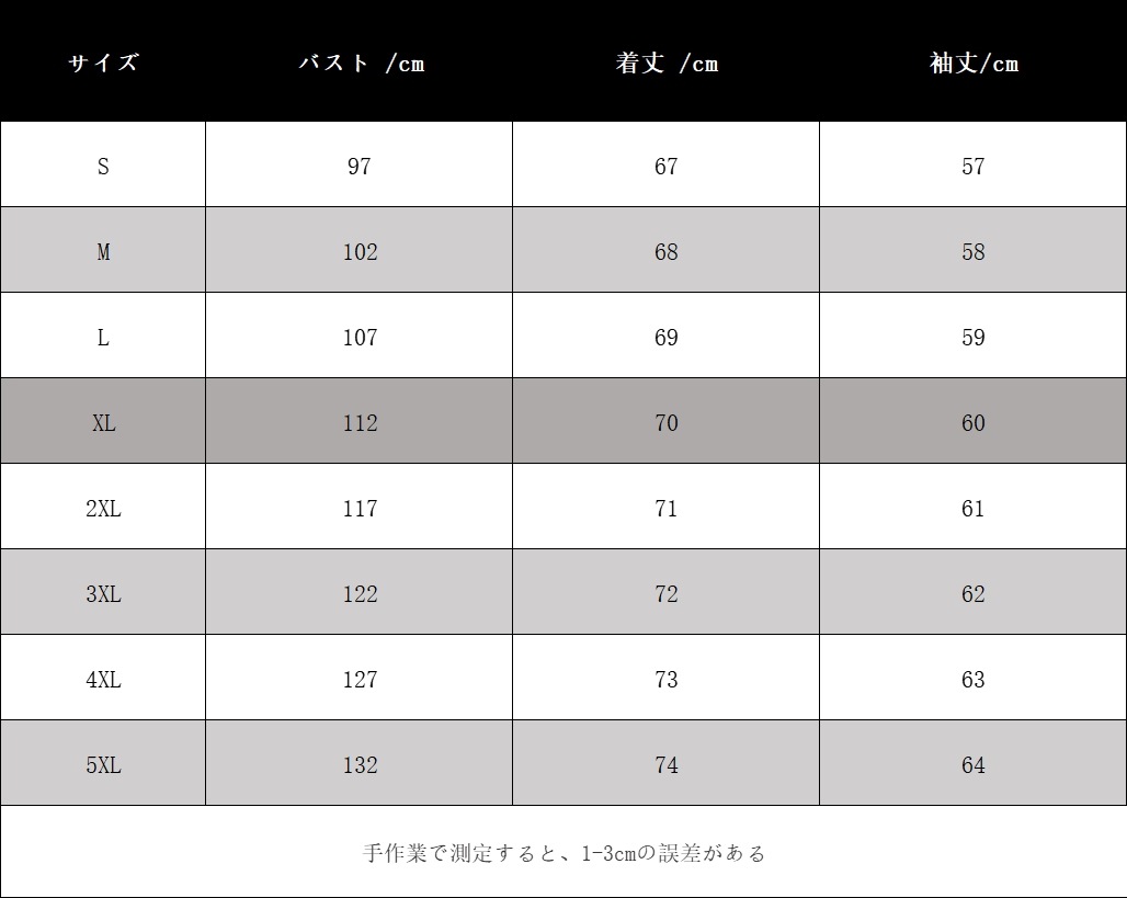 Size: S M L XL 2XL 3XL 4XL 5XL