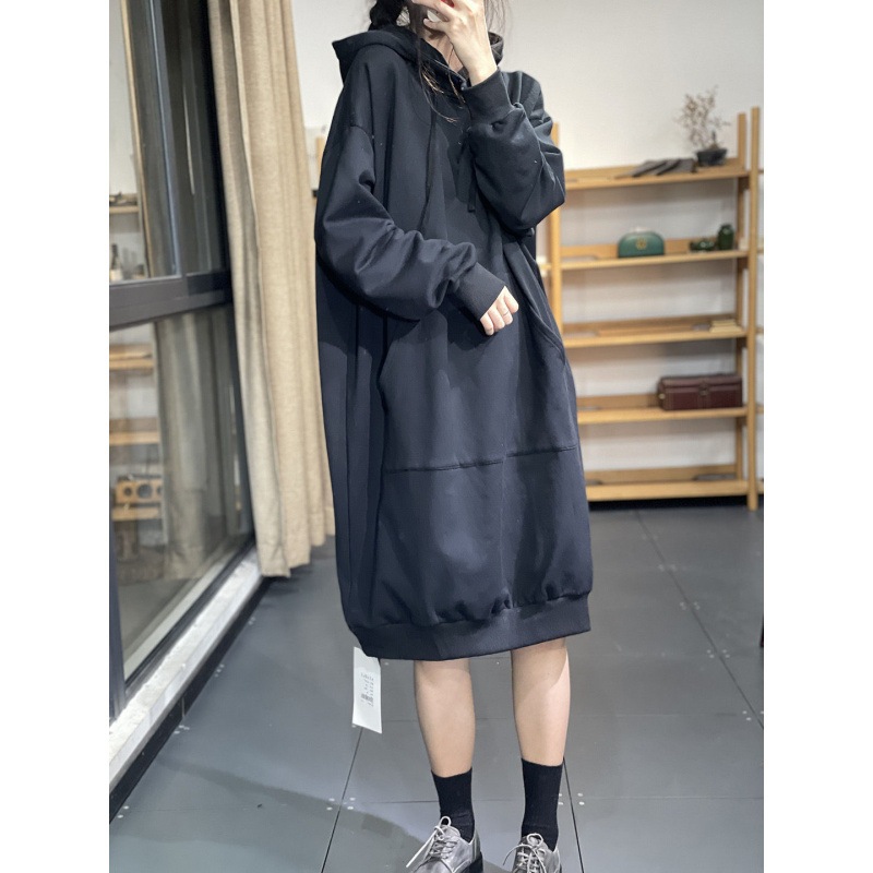 裏起毛 厚手スウエットセミロング丈 ワンピース パーカー スウェット ゆったりフード付き膝下丈 パーカーレディース ロング丈 プルオーバー ロンT