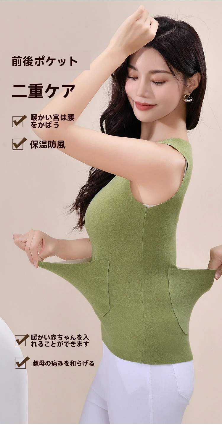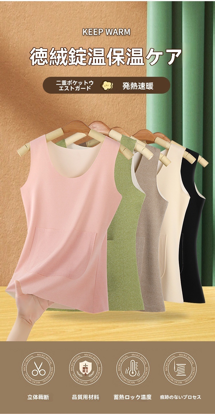 裏起毛 タンクトップ あったか インナー レディース 腹巻き ポケット付き 冷え対策 暖かい 防寒 秋冬 下着 肌着 ストレッチ キャミソール