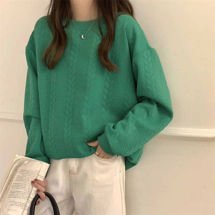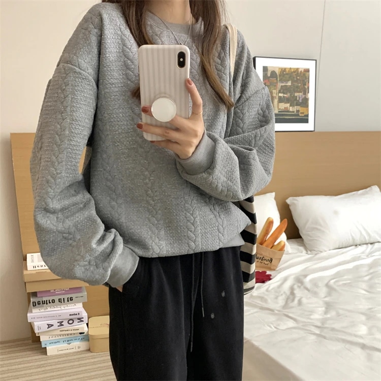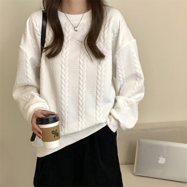 長袖スウェット 型押し エンボス加工 トップストレーナー スウェット 型押しプルオーバー 韓国ファッション トレーナー