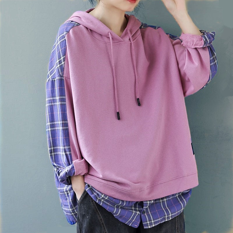 チェック 長袖 マウンテンパーカー トレーナーフード付き 大きめサイズ トップス アウター 百掛け 裏起毛 運動 スウエット パーカー ロンT 裏起毛ファッ