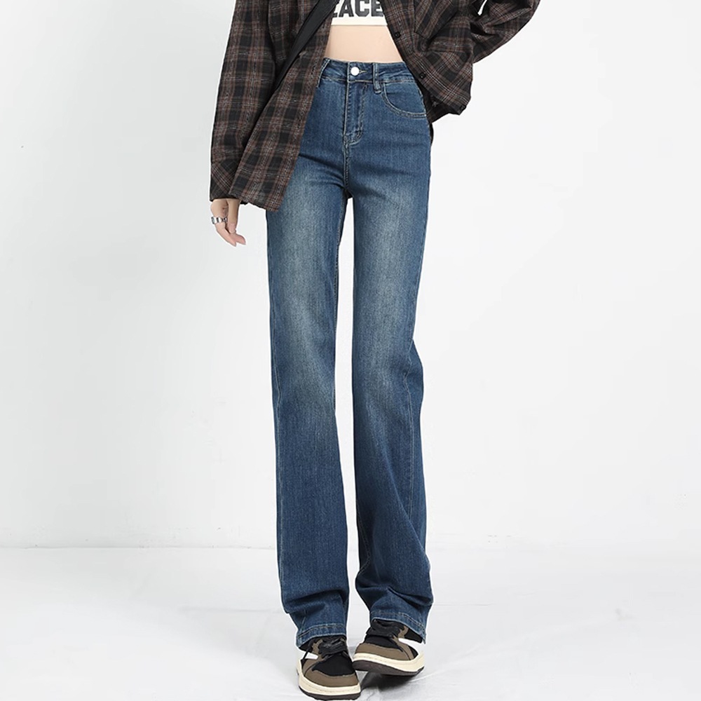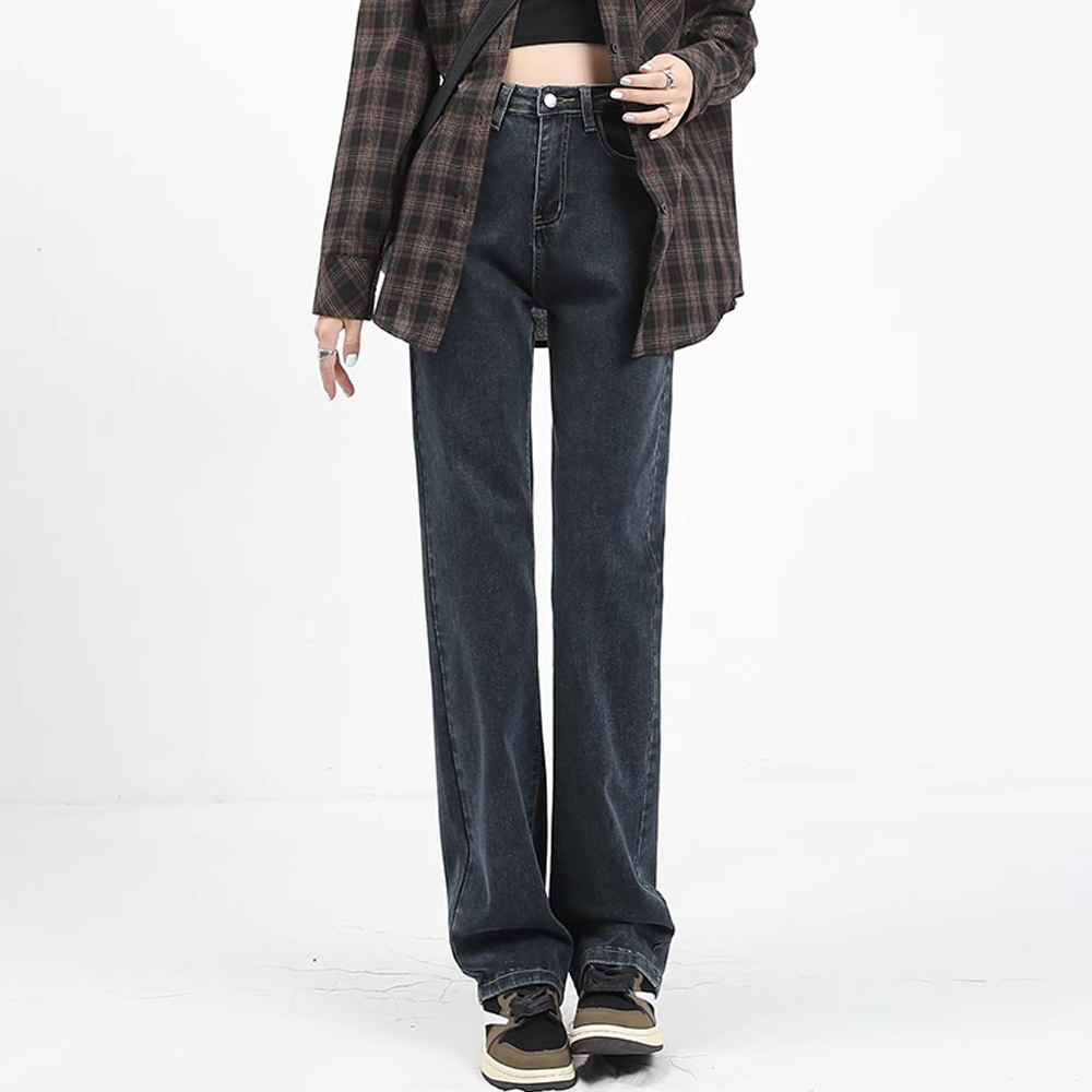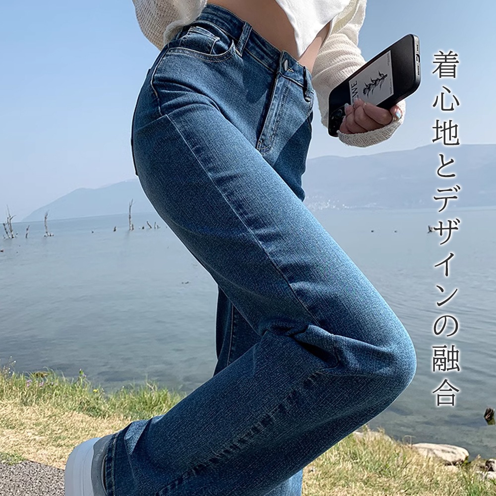 デニムパンツ ワイドレッグ デニム ジーンズ ストレートパンツ 伸縮性 ハイウエスト シック 韓国スタイル カジュアル ヴィンテージ ストリートウェア