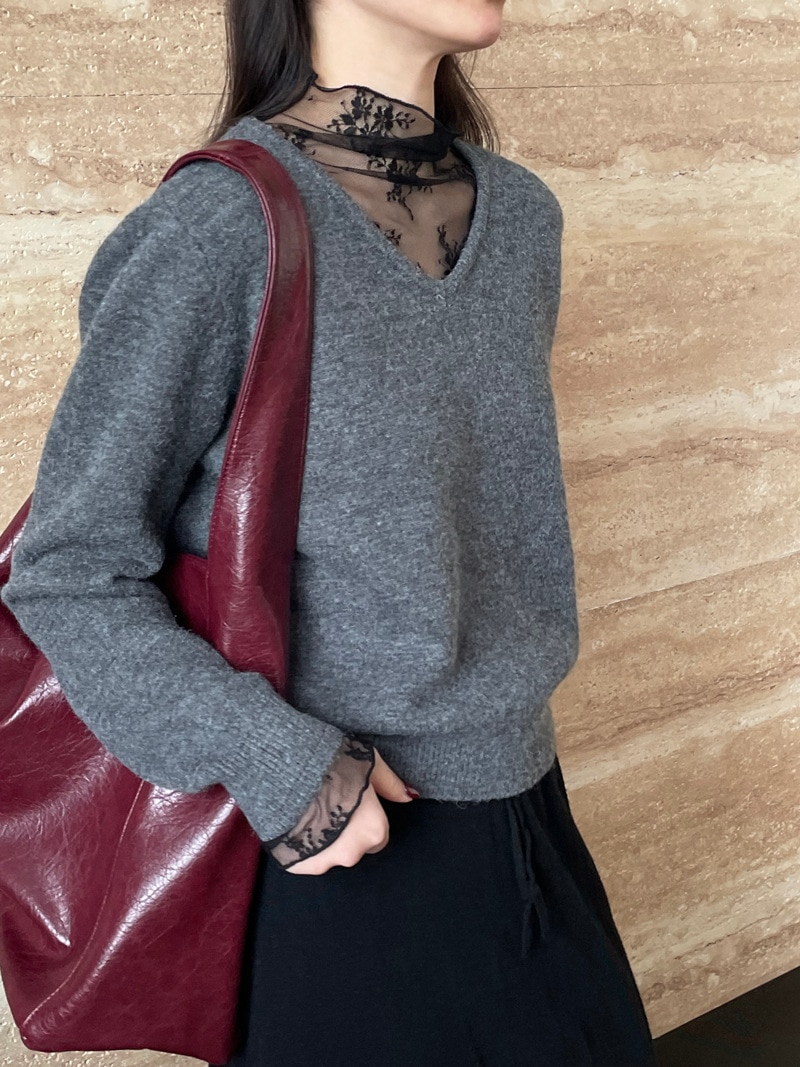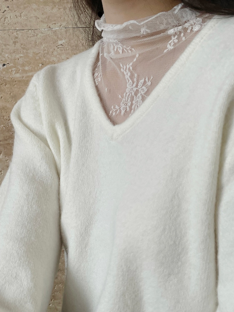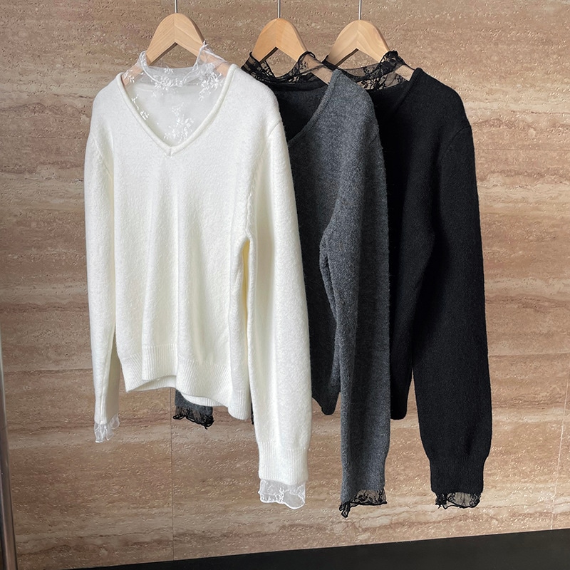 ニット レディース レース切り替え トップス レースネック カットソー ベーシック レース袖裾 長袖 コットン 柔らかい 着痩せ 女性らしい 暖かい 上品 大人 春 秋 柔らかい カシミアタッチ 通勤