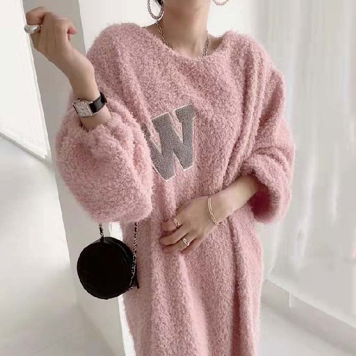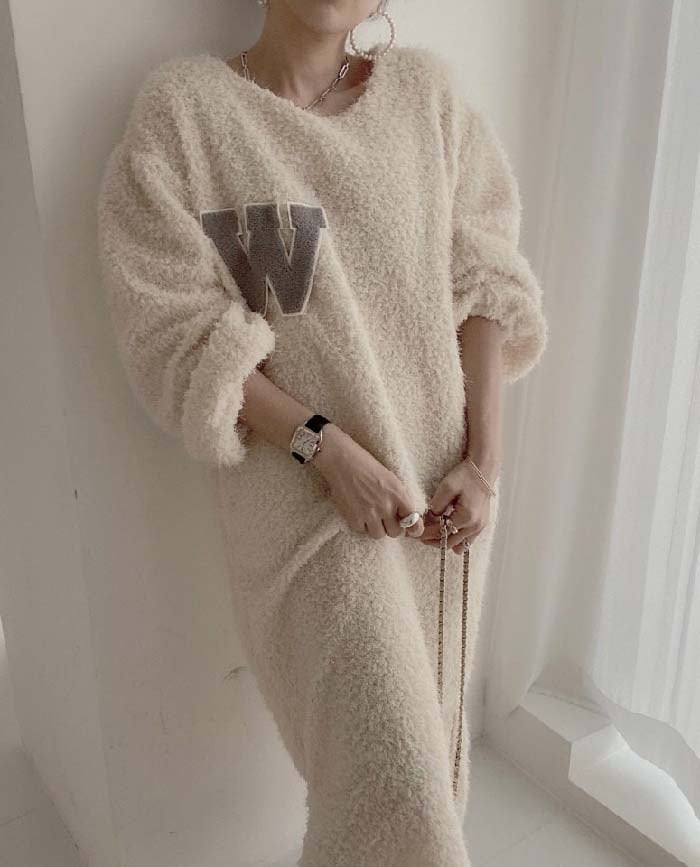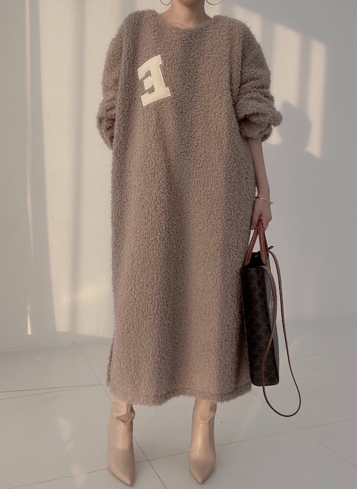 ワンピース レディース 長袖 ボア ワンピース ロング丈 春 秋 冬 チュニック もこもこ ロング丈ワンピ ゆったり シンプル カジュアル 体型カバー 柔らか 暖か あったか 大人可愛い 女性らし
