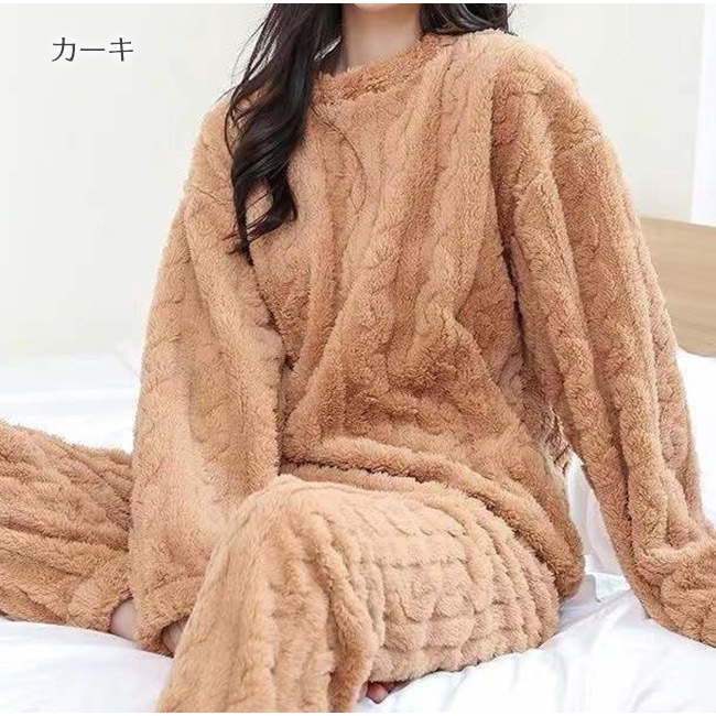 パジャマ ルームウェア レディース 上下セット モコモコ 防寒 シンプルパジャマ 寝巻き もこもこ あったか ゆったり 暖か 部屋着