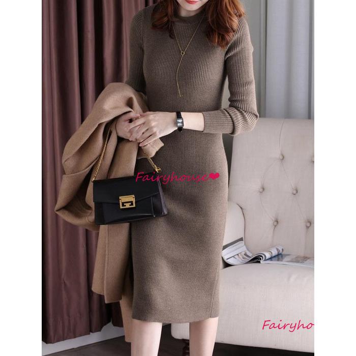 新作登場 ニットワンピース レディース 膝丈ワンピース 秋冬新作 長袖ワンピース タイトニットスカート ニット セーター オシャレ韓国風 大人上品 着痩せ