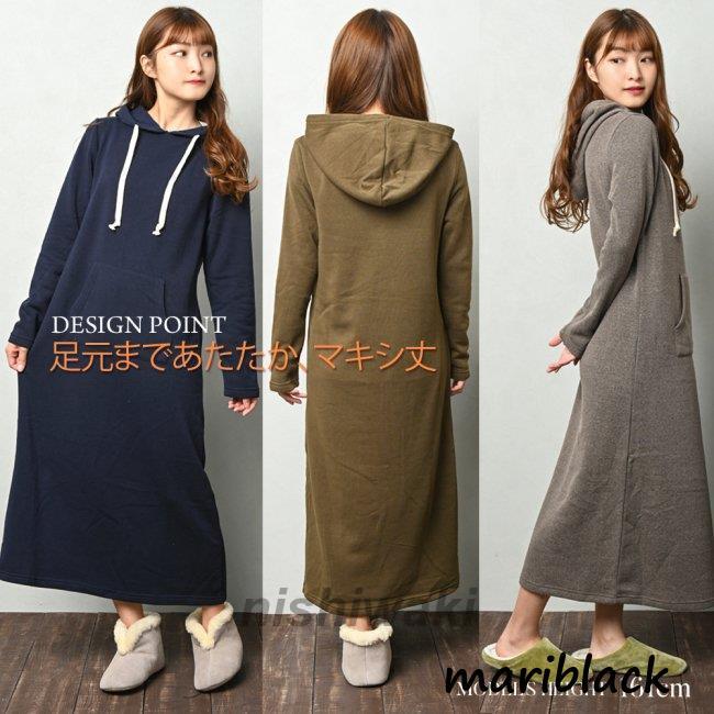 マキシ丈ワンピース 裏起毛 マキシ丈 ワンピース ルームウェア 部屋着 可愛い 暖かい カジュアル 秋冬 ファッション8色 長袖ロング マキシ丈ワンピ