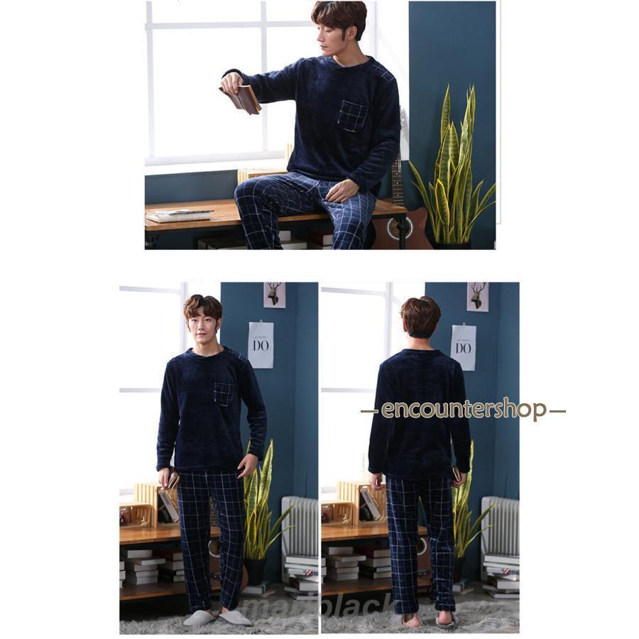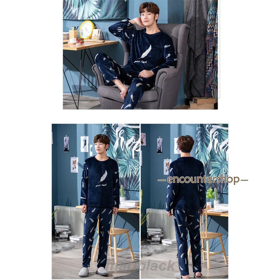厚手パジャマ パジャマ メンズ 上下セット あったか ルームウェア 寝巻き 部屋着 厚手 男性用 もこもこ 秋 冬 長袖 ズボン ふわふわ 裏起毛