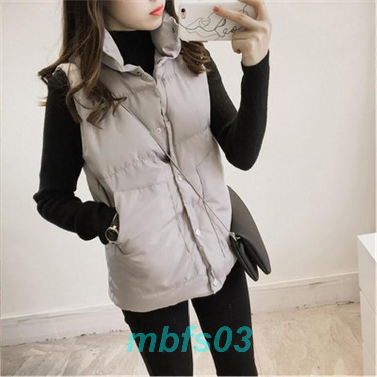 中綿ベスト ベスト レディース ショート丈 中綿ジャケット 薄手 ノースリーブ 秋冬 無地 防風 防寒 着痩せ 通勤 オフィス OL ベスト