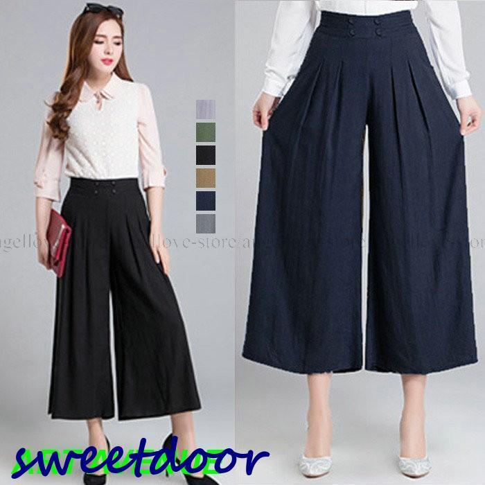 秋冬 ガウチョパンツ レディース ワイドパンツ スカンツ スカーチョ ブラック カーキ ライトグレー 濃いグレー ネイビー アミーグリーン その他 パンツ
