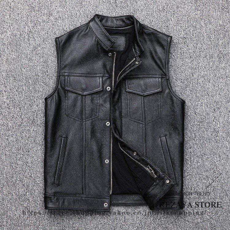 春夏秋冬本革ベストメンズレザーベスト牛革 ジレベストベスト 前開きチョッキバイク用ベスト通勤カジュアルフォーマル バイクウェア プロテクター