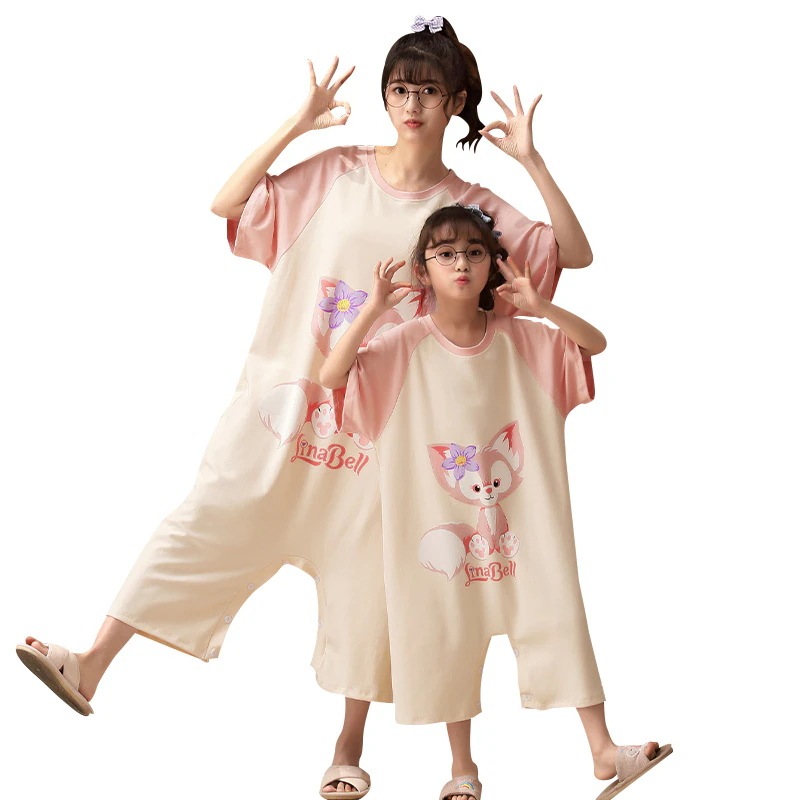 夏の純綿半袖ャマ女の子と子供用漫画大きい母と娘のネグリジェ親子着用ホーム服秋 パジャマ