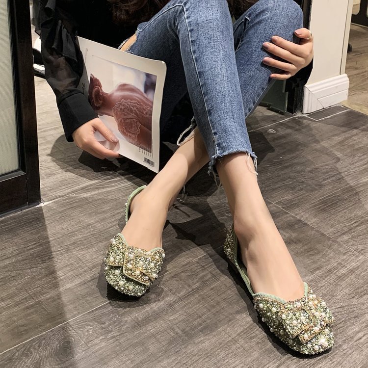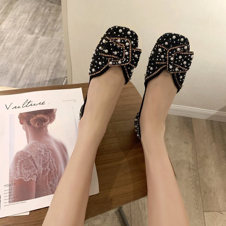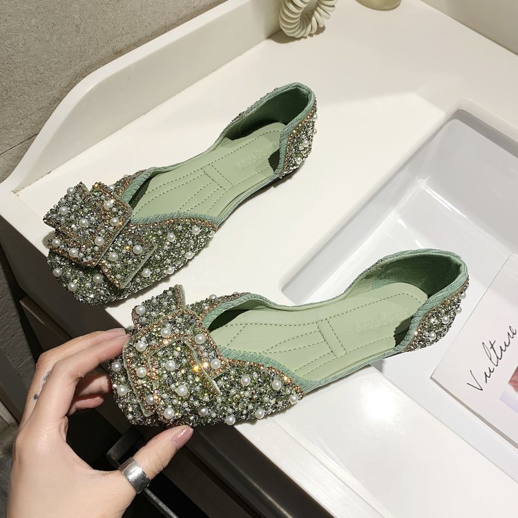 パンプス レディース ローファー フラットシューズ 靴 パール付き リボン 柔らかい キラキラ 結婚 その他 パンプス