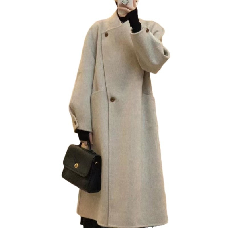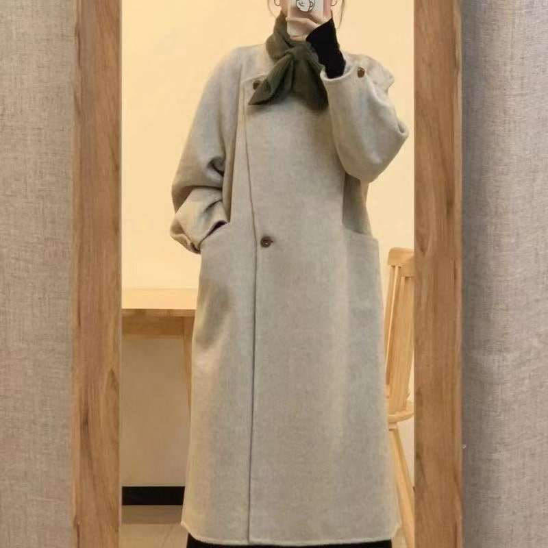 大人っぽチェスターコート 韓国ファッションノーカラーコート冬ミディアム丈ツイードレディースレトロジャケット その他 アウター