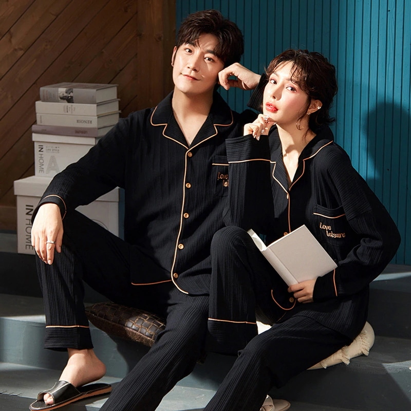 気質 パジャマ カップルペアルック ルームウェア 春秋冬 ペアパジャマ長袖パジャマ韓国風 大きいサイズ 前開きルームウェア レディース メンズ 部屋着 シンプル