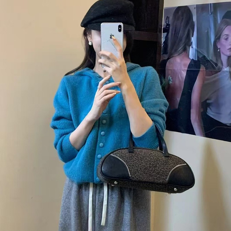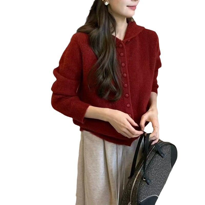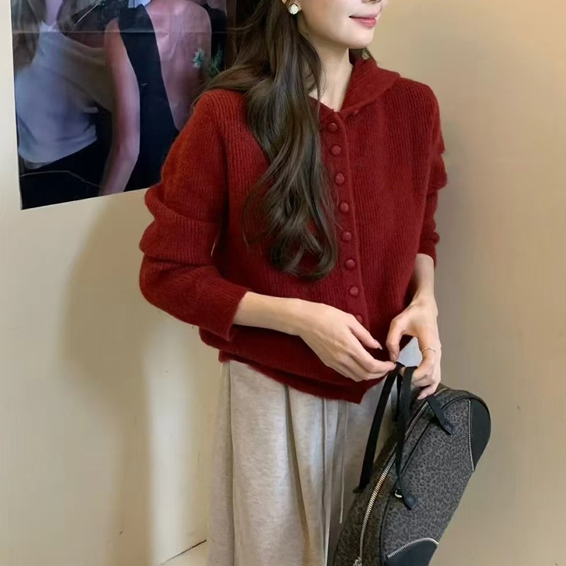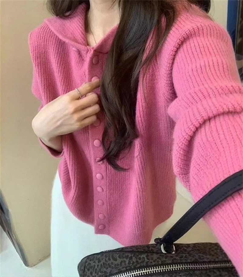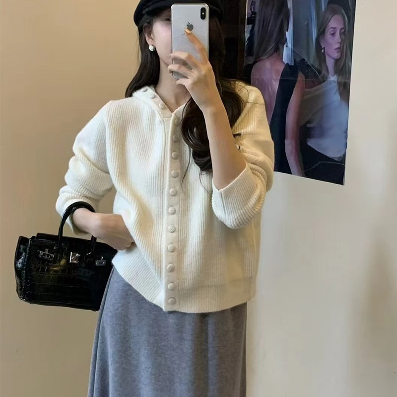 韓国系純色シングルブレスト連帽ニットカーディガン女性2024秋冬新作キャンディカラーニットコートトップス ニット