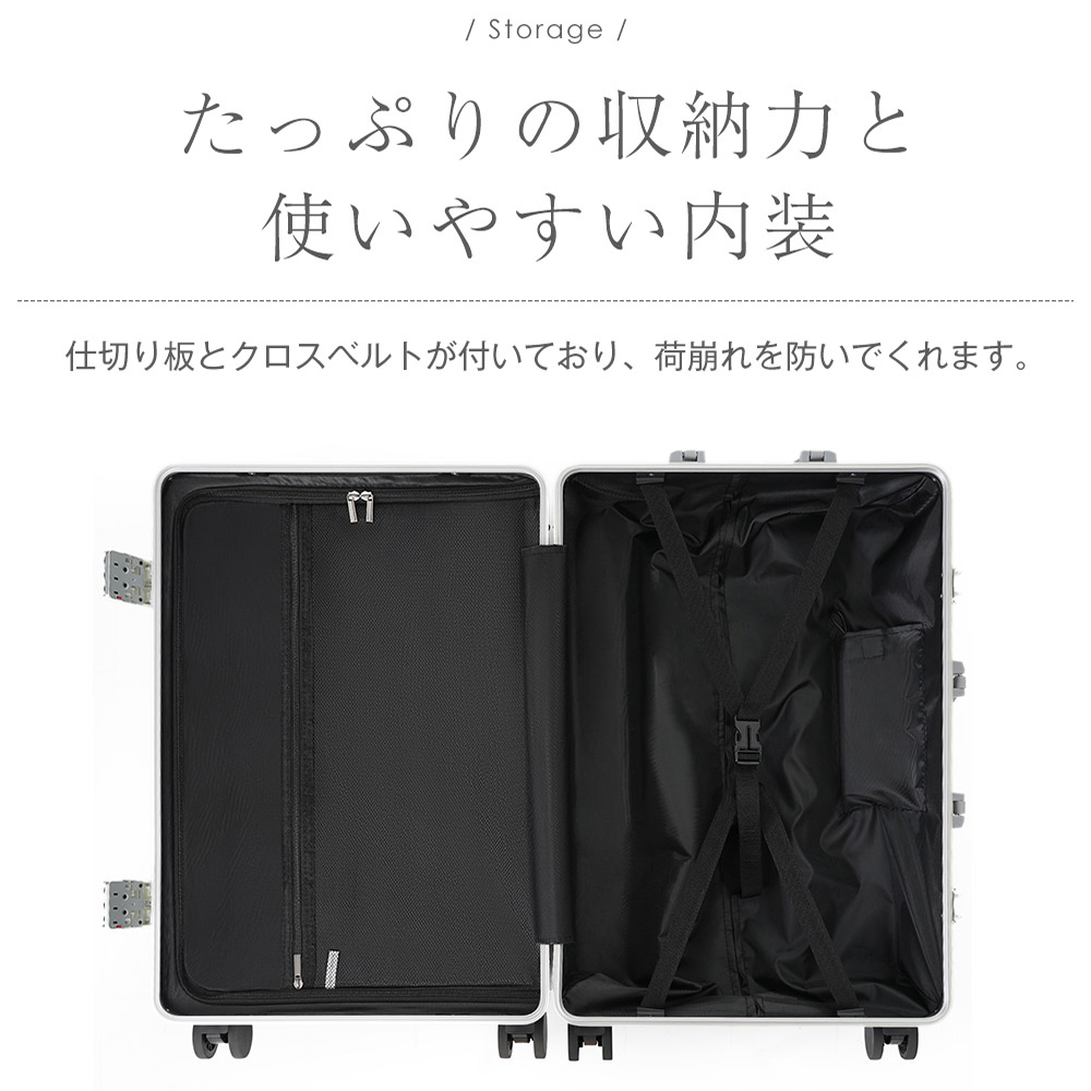 POINT 1.【高級感·高品質のアルミフレームを採用】ビジネスでもカジュアルでもシーンを選ばずに使用できる。優れた強化アルミフレームで大切な荷物をしっかりと守る。