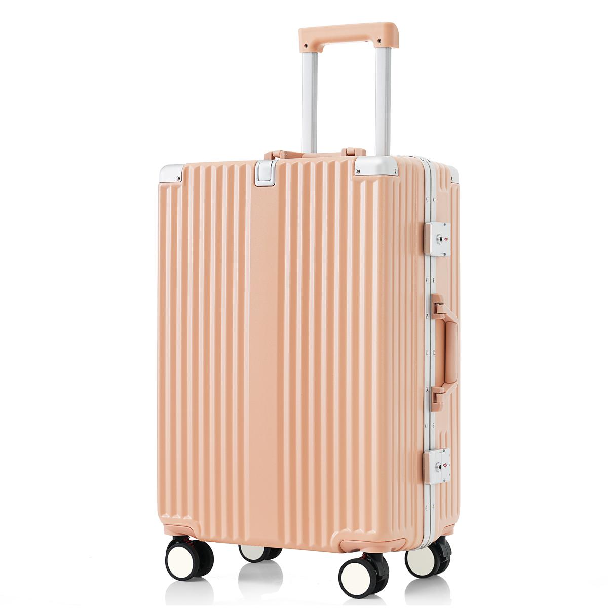 スーツケース Lサイズ フレームタイプ アルミ USBポート付き カップホルダー フック式底足 ストッパー付き キャリーケース キャリーバッグ 軽量 おしゃれ 静音 海外 高級感 TSAロック 大型 8~14日 China Pink