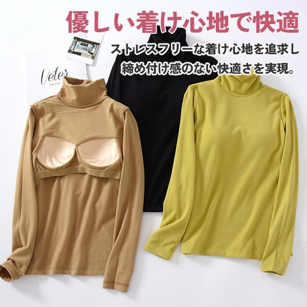 カップ付き Tシャツ 長袖 インナー ブラトップ 暖か 裏起毛 レディース ノンワイヤー タートルネック ハイネック ルームウェア 部屋着 トップス