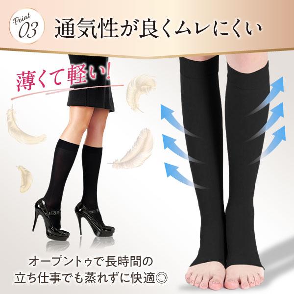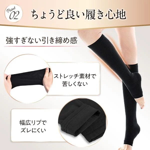 着圧ソックス 寝るとき 2足セット 夏用 オープントゥ 弾性ストッキング 靴下 レディース ハイソックス ふくらはぎサポーター 日中 むくみ メンズ