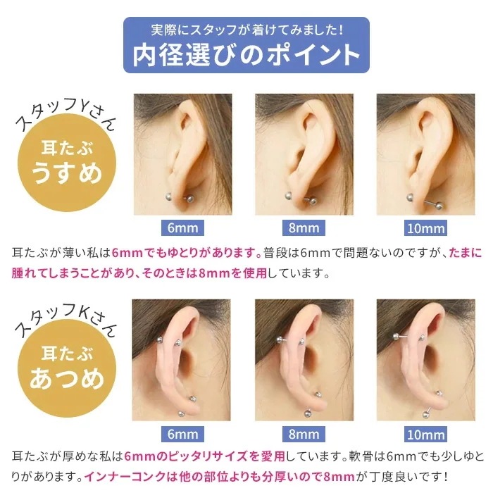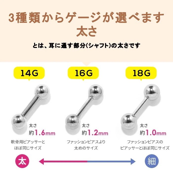 ボディピアス 16G 14G 軟骨ピアス 舌ピアス 片耳用 内径 6mm 8mm 10mm ピアス